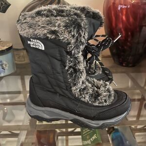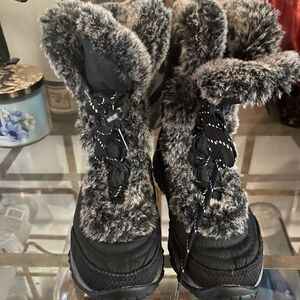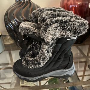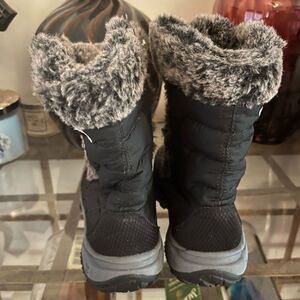 Keep your child's feet warm and stylish with these cozy black winter boots. Perfect for snowy adventures.