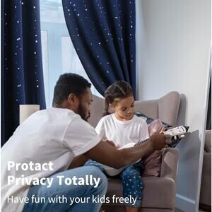 Kids Blackout Curtains Set 52x63 Navy Blue Silver Stars Insulated Darkening New