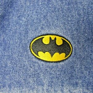 Stylish blue denim jacket featuring a distinctive logo patch. Perfect for adding a touch of fun to any outfit.