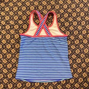 This stylish kids' swim set features vibrant blue and red stripes, perfect for fun in the sun. Comfortable and durable, it's ideal for active play at the beach or pool.