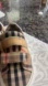These Burberry sneakers showcase a stylish tan and white plaid pattern, complemented by a convenient velcro strap closure for easy wear. The low-top design features a rounded toe and a contrasting white sole, making them a versatile choice for casual outings.