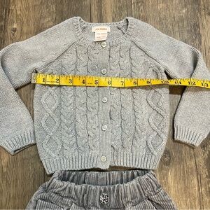 Kids Button Down Gray Knitted Cardigan and Corduroy Pants Size 18-24 Months