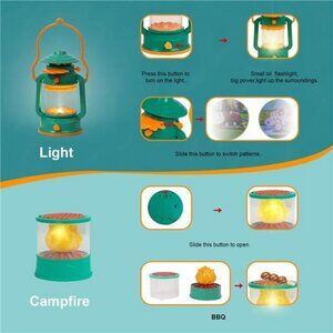 -BATTERY-POWERED KIDS CAMPING GEAR TOYS: A true-to-life campfire with extendable stand and oil lantern can light up with 3 AA batteries (not included) and adjust the binoculars to see the world.