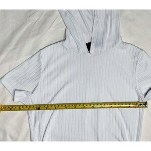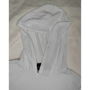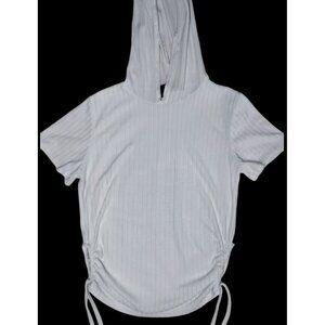 Kids Cant Miss Ribbed White Hooded Top Girls 10/12 Drawstring Sides Shirt Hoodie