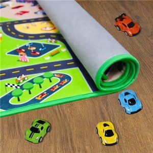 🧿【4 Toy Cars Kids Carpet Set】 This car rugs for kids comes with 4 pullback toy cars, which are cute and exquisite. The sizes of this kids rug is 52" x 47.2", making it an excellent size and area for children to free play. Baby & kids absolutely will be captivated by this play mat and enjoy the double happiness brought by this play mat and toy