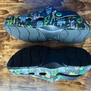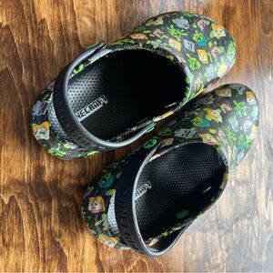 Step into fun with these vibrant kids clogs featuring playful cartoon characters. The black and green design adds a splash of color to every adventure.