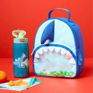 Carrying lunch to school, picnics or road trips will be so much more fun for your child with this Shark Fashion Lunch Bag from Cat & Jack™. This lunch tote features a single zippered compartment to hold anything from snacks and sandwiches to fresh fruit. It also features a mesh pocket on the inside and an outer zip pocket for added storage space, and a tote handle makes it easy to carry. Made from 100% recycled polyester and featuring a dome-shaped silhouette, it features a shark fin accent on the front and shark teeth accents on the transparent outer pocket to add quirky style to their lunchtime.