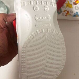 Fun and colorful kids clogs featuring a vibrant design. Perfect for little fans, these shoes offer comfort and style with a playful print. Easy to slip on and off, ideal for everyday adventures. new wit tag size 1