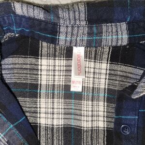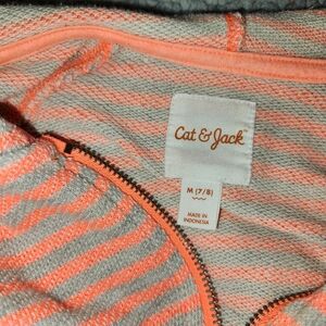 Orange striped jacket (stain on back), blue plaid shirt/dress, blue dress with lace detail (belt missing), pink and gray 3/4 sleeve tee, black and white skater dress size 10, and unicorn 🦄 tee. See pictures. Questions welcome.