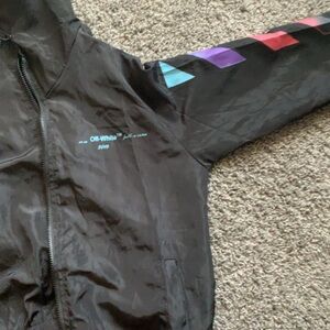 This stylish kids' jacket features a vibrant geometric design on the sleeves, perfect for adding a pop of color to any outfit. Made with quality materials, it ensures comfort and durability. Ideal for everyday wear.