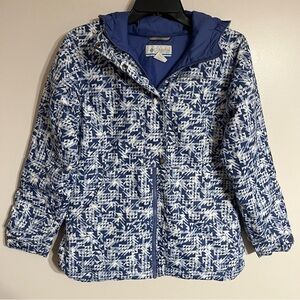 Kids Columbia Winter Hooded Ski Jacket White & Blue Geometric Print Size Large
