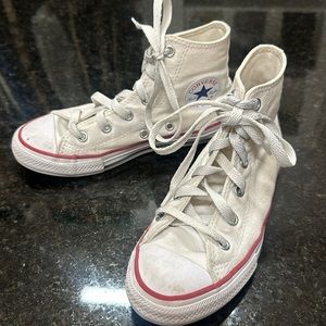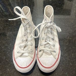 White high top converse in super good condition. Shoes are clean and gently used. Lots of life left. Youth size 13.5