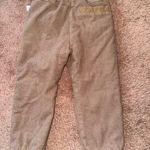 These cozy joggers for kids feature a stylish brown and tan design, perfect for playtime or lounging.