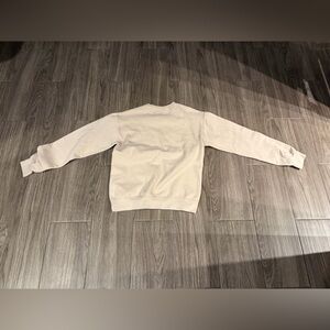 This cream sweatshirt features a vibrant Muscle Racing graphic, perfect for young car enthusiasts. Comfortable and stylish for everyday wear. Small dark stain on the bottom right side