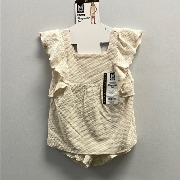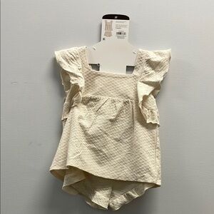 New with tags. Color is called Almond Butter. Original photos and stock photos available. Adorable cream matching set with ruffle details, perfect for stylish kids.