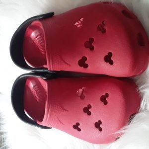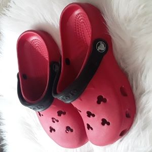 Kid's Red Size 2 (B)/4 (G) Disney Mickey Mouse Crocs ** Pls See All Pics For Reference ** In Pre-Owned Condition
