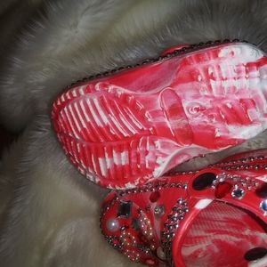 kids/ toddler red/white crocs size 6 New w/o tags has lots of bling/ jibbets really cute mix color. ALL SALES Are Final...**NO RETURNS**NO REFUNDS**
