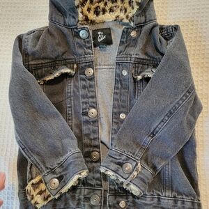 Stylish kids denim jacket featuring a cozy faux fur collar. Perfect for adding a touch of warmth and style to any outfit.
