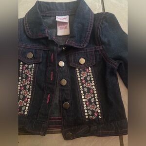 Stylish kids denim jacket featuring beautiful floral embroidery. Perfect for adding a touch of charm to any outfit.