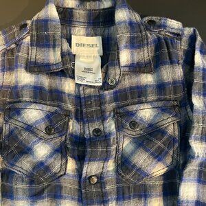 Kids Diesel Button Down Shirt. Color: blue and white. Size: 2.