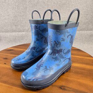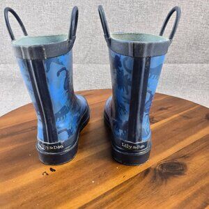 Kids Dinosaur Rubber Rain Boots By Lilly & Dan Size 11/12 Blue & Black