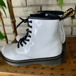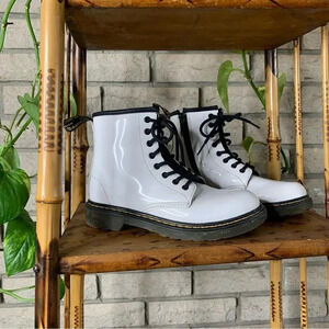 Start your little rocker off early with the new 1460 8-Eye Patent Boot from Dr. Martens! A scaled down version of the classic Docs icon, the edgy-cute Dr. Martens 1460 8-Eye Patent Boot features a patent leather upper, side zipper, lace closure, and air-cushioned rubber sole.