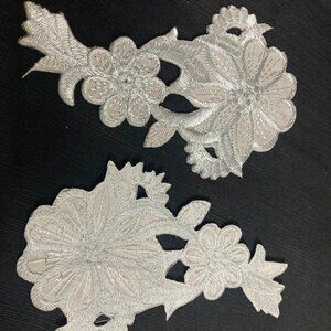 Kids Embroidery Patches Iron On Applique Floral Gray Silver Patches