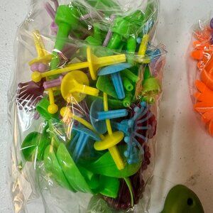 -Interchangeable plastic pieces for multiple flower arrangement combinations