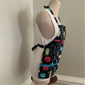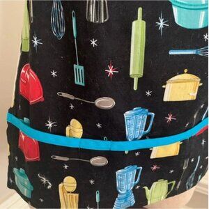 The apron is adorned with vintage kitchen items and perfect for boys or girls.