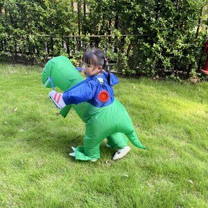 Kids' Funny Dinosaur Inflatable Costume – Green T-Rex Outfit for Cycling & Stage