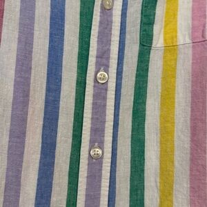 Kid's Gap Pastel Rainbow Striped Short Sleeve Button Down Casual Shirt