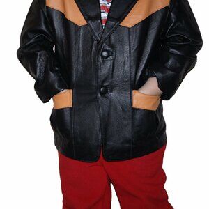 Kids Genuine Leather Western Jacket – Handcrafted Two-Tone Design