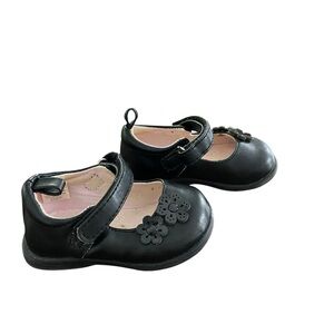Pair 3: Koala Kids Black shoes with adjustable straps. 3-D flowers