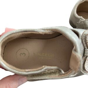 Pair 4: Genuine Kids Oshkosh B’gosh gold sandals with bow. Adjustable straps.Shiny and glittery.
