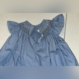 Kids Girls Smocked Blue & White Gingham with Embroidered Design & Flowers