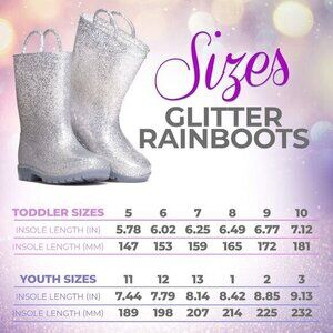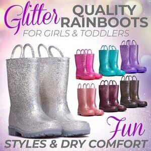 These stylish kids' rain boots feature a sparkling silver design, perfect for rainy days. Durable and comfortable, they keep little feet dry and happy.