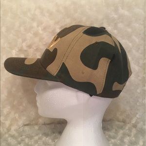 Camouflage w/ Gold Velcrosnap......With the blessings of God , we were able to create the perfect cap. Handmade and crafted to meet our standards of genuine quality and perfection. With the all around good fit , we were able to construct a cap that is durable and comfortable. Our Classic six-panel silhouette features an embroidered logo at the front along with a curved brim (Durable) + stitched grommets at the crown. Complete with an adjustable Custom strapback closure.