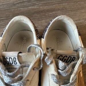 Kids used - good condition Golden Goose super-star low top sneakers in “Cream / Beige / Dark Grey” with the original box