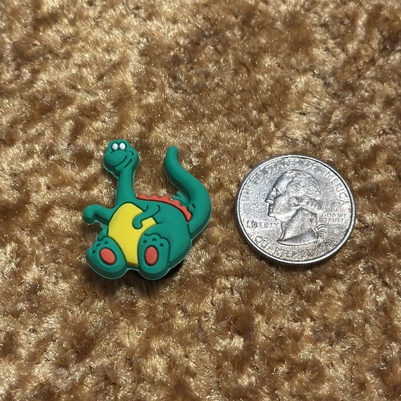Dinosaur character shoe charm. Great for crocs or shoes the Jibbitz can connect to. These accents can be for everyone men women and kids. People from all professions love these. Doctors, nurses, teachers and students alike.