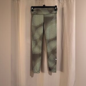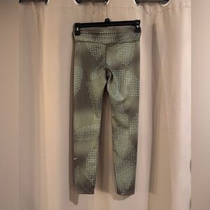 Stylish olive green leggings with a unique dotted pattern. Perfect for casual wear or workouts.