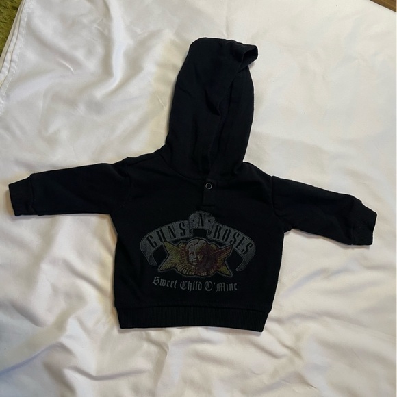 -Features: Kids Guns N Roses size 0-3 months black hoodie. No stains or holes.