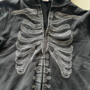 Kids Gymboree M 7/8 Halloween Skeleton Stitched Zip Up Hooded Sweatshirt