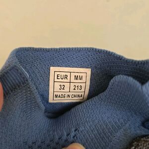 Kids soccer cleats, EUR size 32, which is US size 1 to 1.5. High collar, lace closure, blue graphic design, lots of life left.