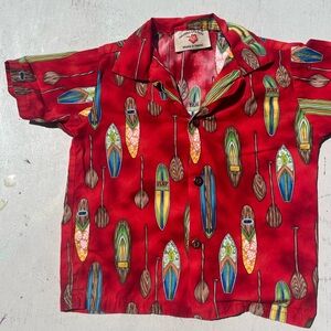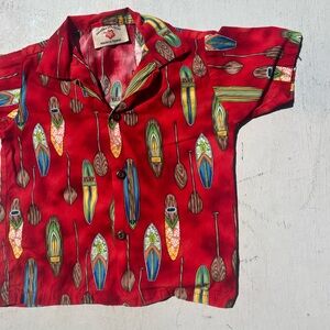 Kid's Hawaiian Shirt Red Tropical Floral NO SIZE TIKI LUAU Surf Beach Island BBQ. Cotton. Made in USA.