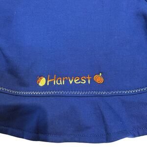This navy blue, button-up cardigan features charming pumpkin embroidery and pumpkin-shaped buttons, perfect for the harvest season.
