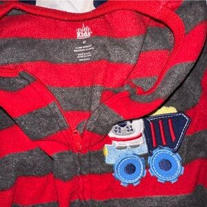 These cozy sleep sacks from Kids Headquarters are designed in a soothing gray and vibrant red color palette. Crafted for comfort, they offer a snug fit perfect for a restful night's sleep. The soft fabric ensures a gentle touch against the skin, making them an ideal choice for bedtime relaxation. Good condition besides the nonslip lettering on the feet washing off. Smoke free home.