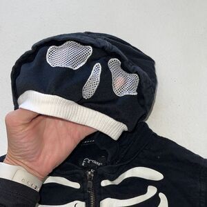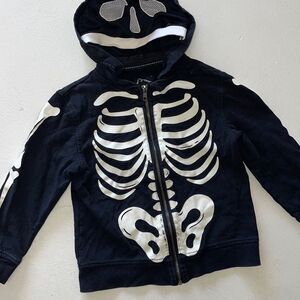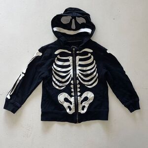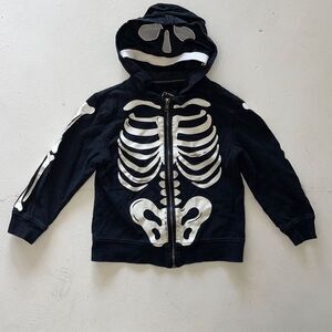 Kids Hooded zip up Halloween black white skeleton spooky costume jacket size 4 5
