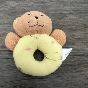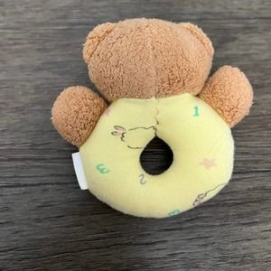 Kids II Brown Teddy Bear Plush Rattle with Yellow Sheep Pattern Ring