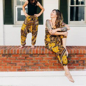 Each order comes with a beige cotton bag! Buddha Pants are your travel ready companion, wearable with anything from sandals to heels or even barefoot. Great wrinkly or pressed, you can leave them hanging around your ankles or hike them up under your knees for a different look. Whether you're looking for a standout patterned harem pant or dropped crotch winter pants for everyday wear, we've got you covered.