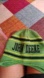 pre owned condition.Green beanie featuring black and yellow stripes. Bold John Deere logo on front.